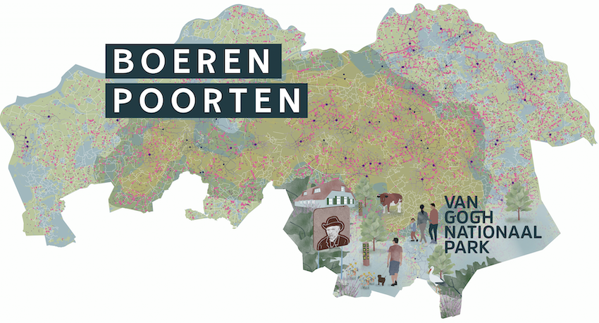 | De Boerenpoort, een nieuw concept voor toegangspoorten tot het boerenland, ontwikkeld als aanvulling op de wandelstartpunten van Van Gogh Nationaal Park en inzetbaar in heel Nederland. Vanuit de nabijheid van stad en dorp bieden Boerenpoorten bewoners en bezoekers een laagdrempelige plek om het platteland te beleven. Op de boerderij komt recreatie samen met korte keten en natuurbeheer: een kleinschalig terras of boerderijwinkel fungeert als vertrekpunt voor wandelroutes over boerenland. |